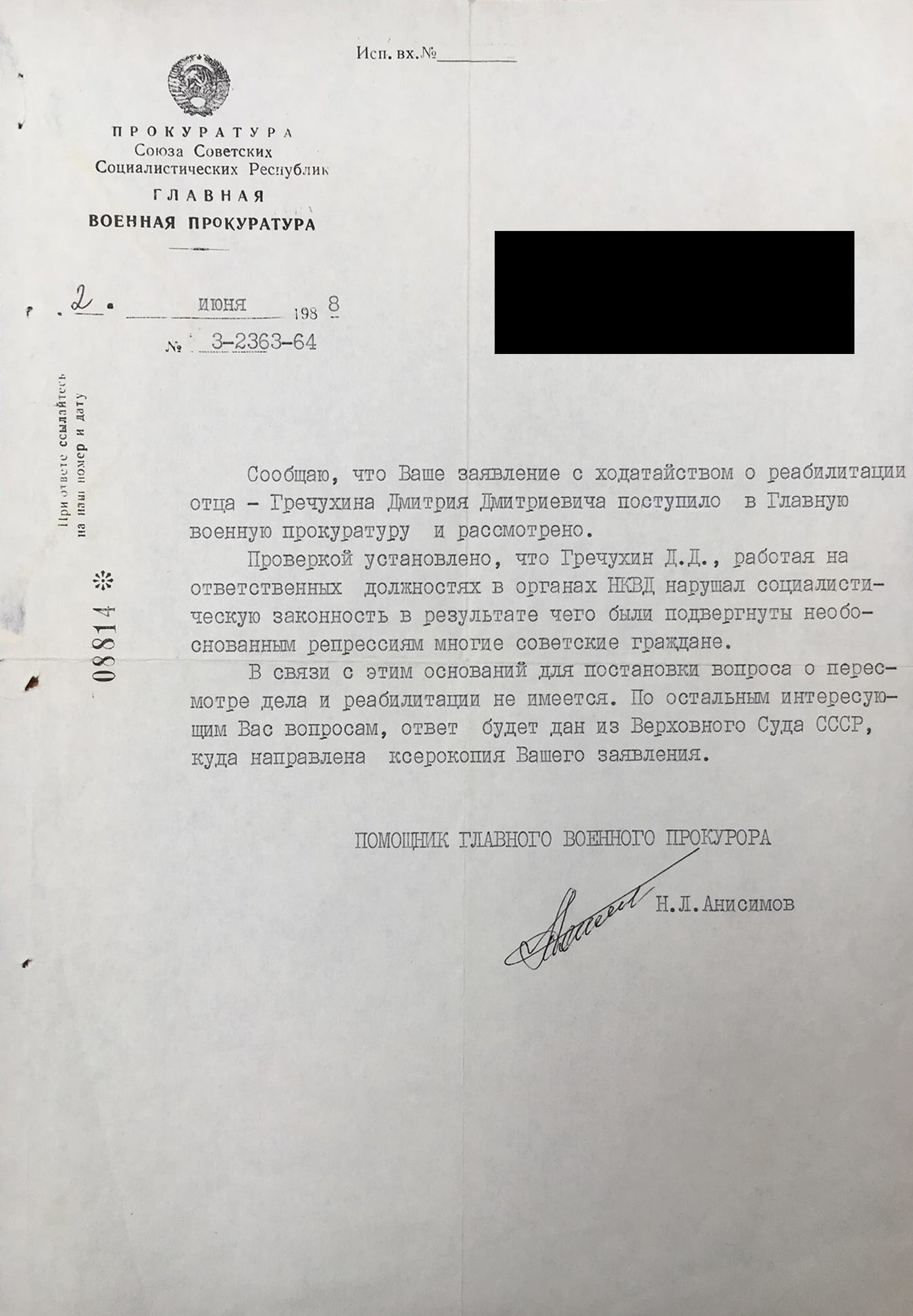 Справка в отношении массового убийцы – ГРЕЧУХИНА Дмитрия Дмитриевича